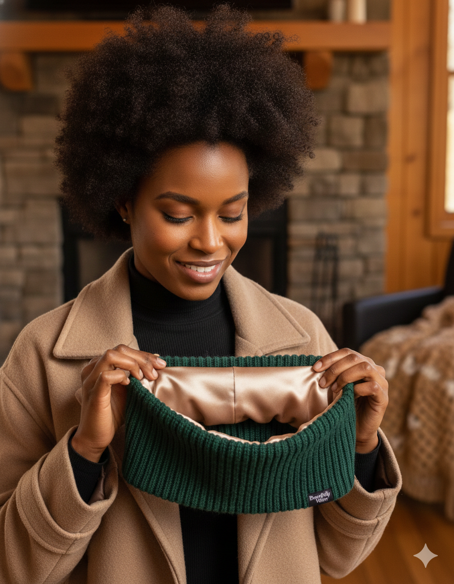 • Frictionless Protection: Features a seamless, luxurious satin interior that eliminates friction, preserving hair moisture, reducing frizz, and preventing breakage common with traditional wool or knit headwear.