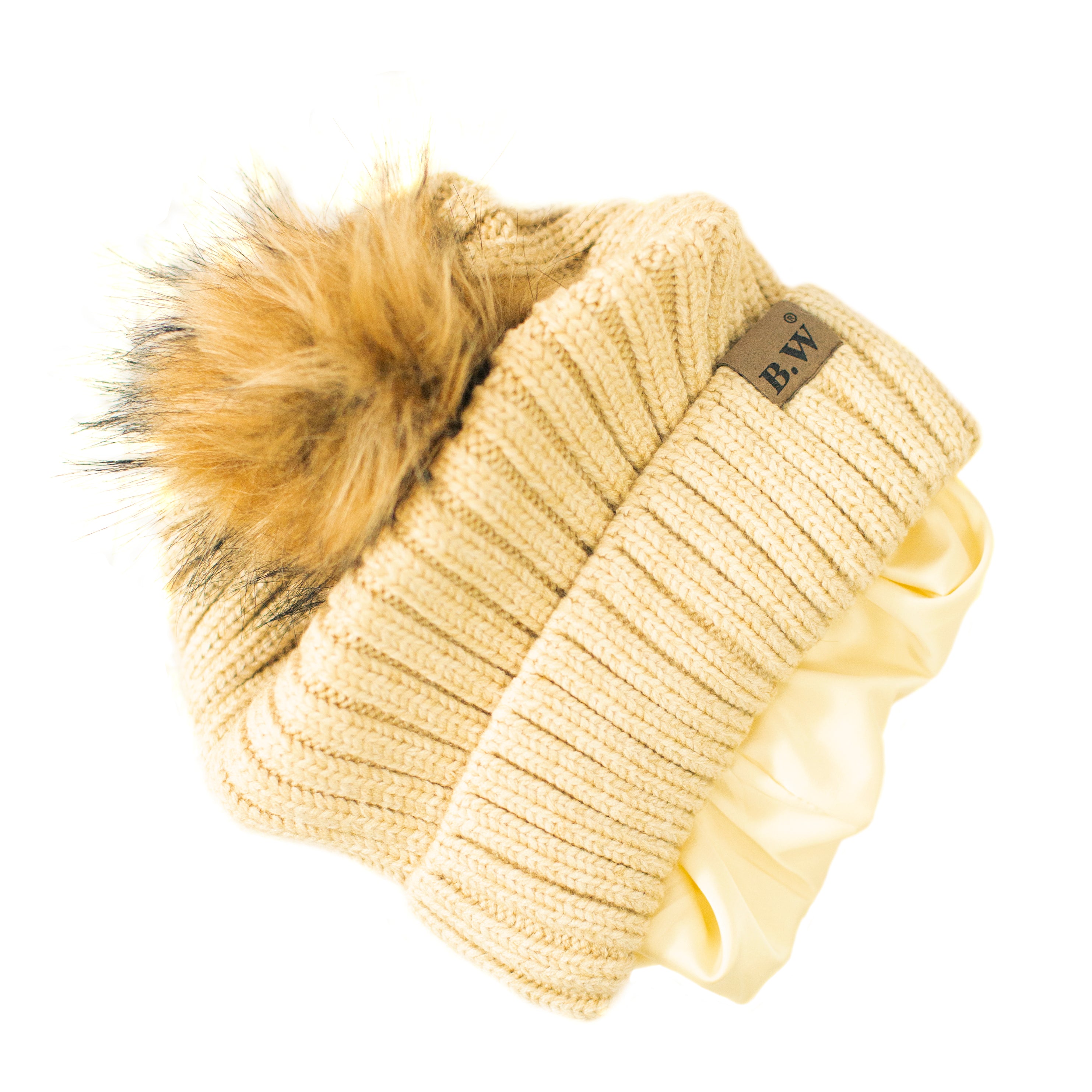 with our specially made satin lining, your hair is protected and looks and feels the same when you take your beanie off.