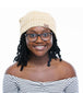 “I received this hat as a Christmas gift. I love it! My hair use to get frizzy from putting on and taking off my regular hats. Now I don’t have that problem. I have a very large head and that hat fits perfectly, I even have some extra room. Support black businesses!”